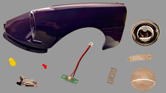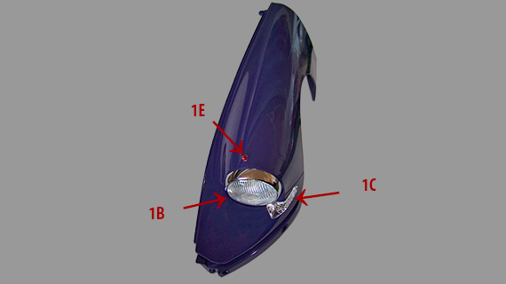 Montage du phare sur l'aile, cabochon de clignotantet et du témoin d'allumage des phares avant gauche.