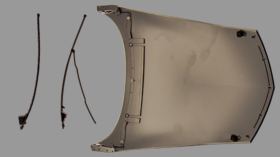 Montage de la tôle de renfort du capot et de la béquille de capot.