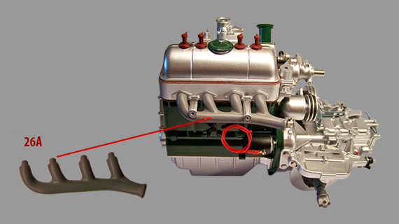 Montage de la tubulure d'échappement sur le bloc moteur.