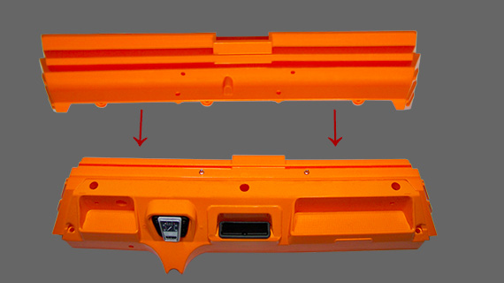 Montage des gicleurs de l'essuis-glace sur la partie supérieur du tableau de bord.