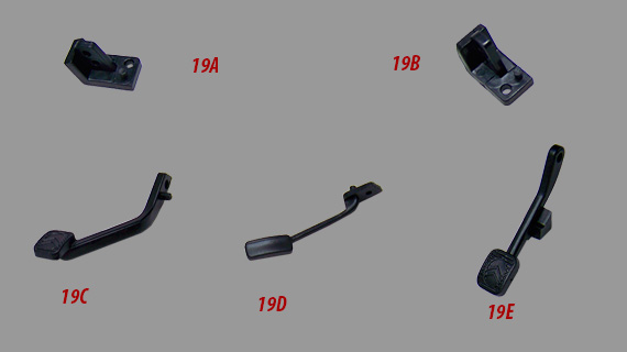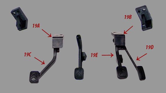Assemblage des pédales d'embrayage, d'accélérateur et de frein.