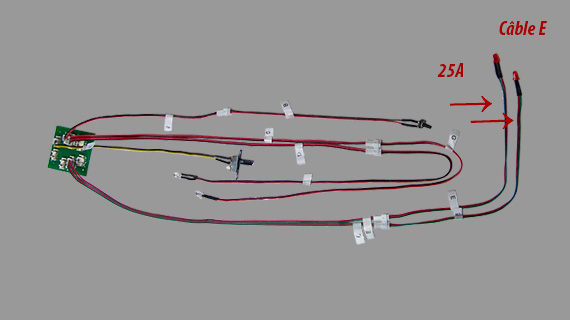 Branchement des feux arrière câble E sur le circuit imprimé.