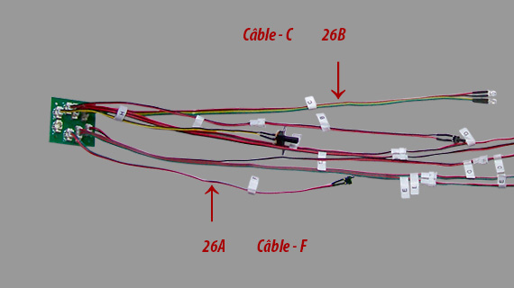 Branchement des câbles C et F sur circuit imprimé.