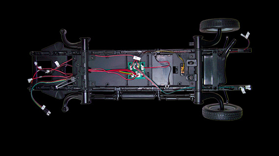 Montage de l'amortisseur de la suspension sur le châssis.