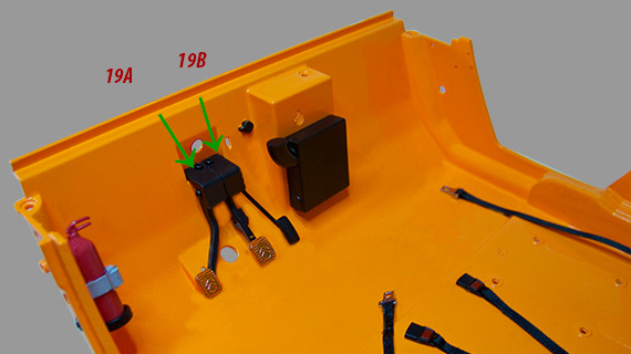 Montage de la pédale d'embrayage, d'accélérateur et de frein sur le plancher de l'habitacle.