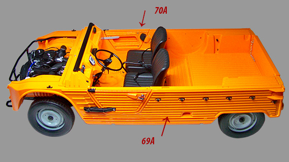 Montage des flancs, le hayon, la calandre et le capot sur la carrosserie.