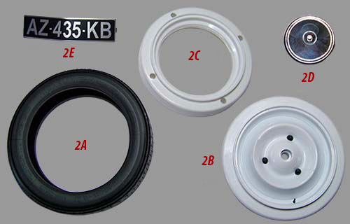 Assemblage de la roue avant et la plaque d'immatriculation avant.