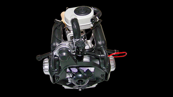 Assemblage du collecteur d'air, courroie d'alternateur et hélice de ventilateur.
