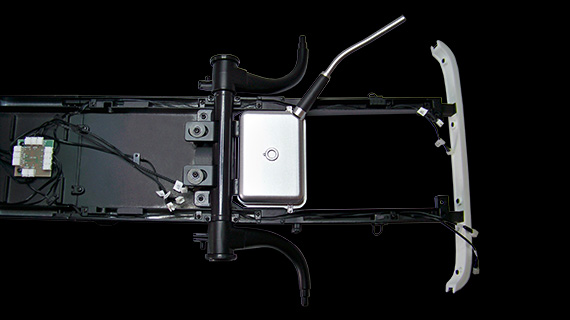 Montage du cahe de la suspension arrière et du tube de remplissage du réservoir.
