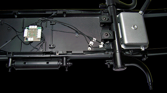Assemblage et montage des deux amortisseurs côté gauche sur le châssis.