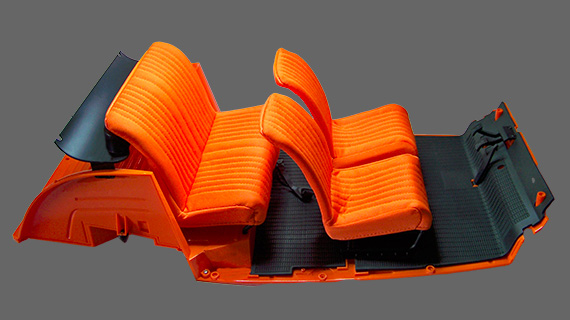 Montage de la banquette et des siège avant sur le plancher.