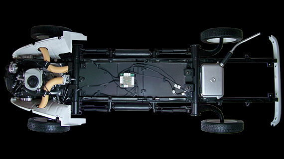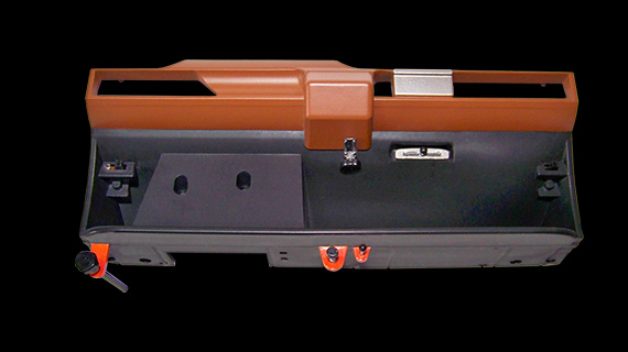 Montage des commandes du levier de vitesses et du frein à main sur la planche de bord.
