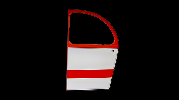Montage du cadre intérieur de la vitre arrière gauche, et fixation de la portier sur la carrosserie.