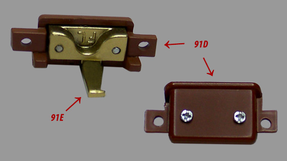 91E | Boîtier de gâche de porte avant gauche | P | 1 |
