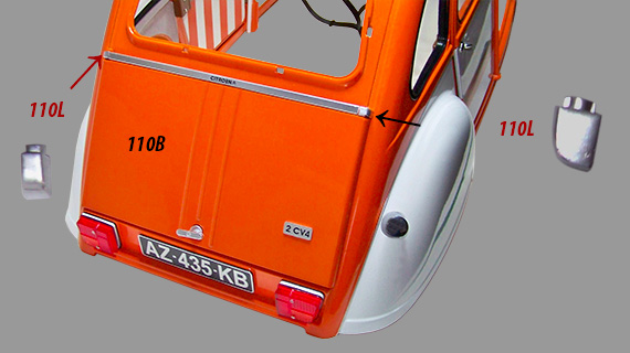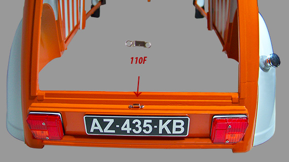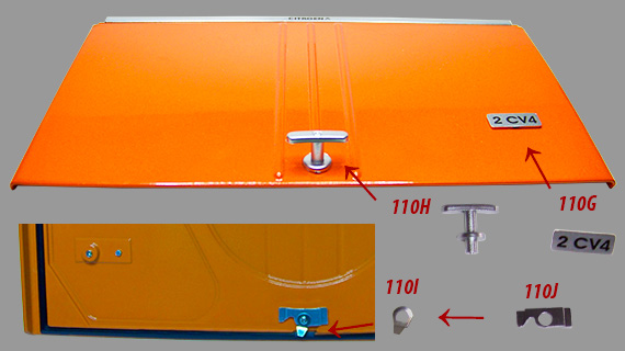 Montage du monogramme 2CV4 sur la porte de coffre, la poignée du coffre et du système de serrure .