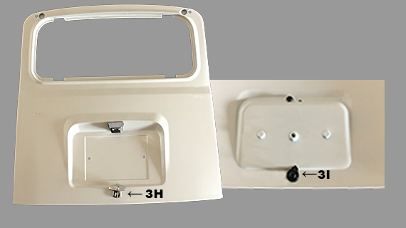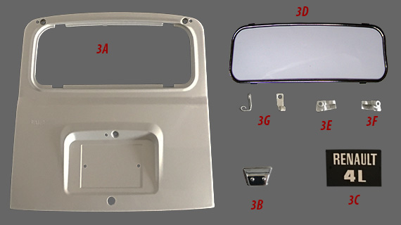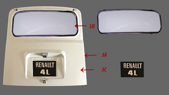 Montage de la plaque minéralogique, de la lunette et de la poignée sur le hayon.