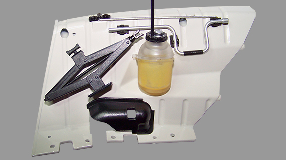 Montage des support de la manivelle du cric sur la joue d'ail avant droite .