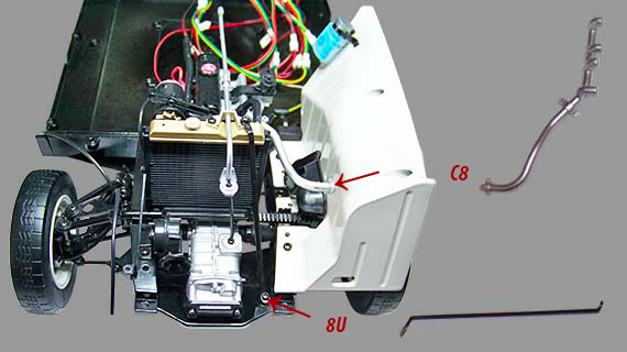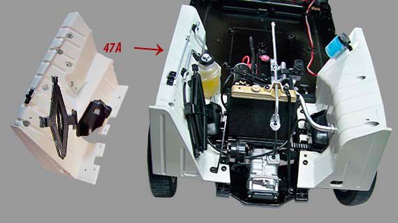 Montage du compartiment moteur partie 1 et fixation du volant sur la planche de bord et assemblage des joues d'ailes sur le châssis .