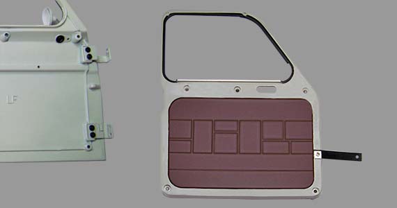 Montage de la garniture et des charnière sur la portière avant gauche .