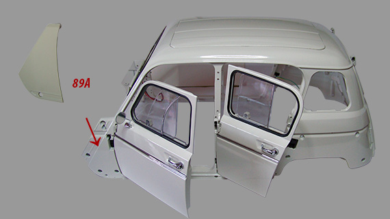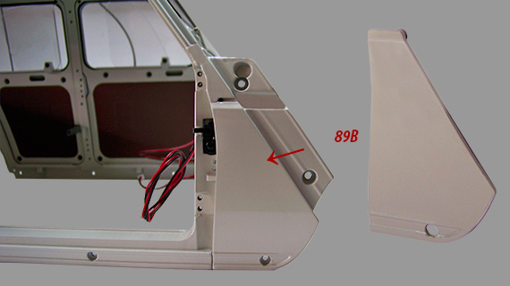 Montage de l'habillage gauche sur le montant de la carrosserie.