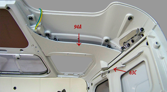 Montage de l'intérieur de l'aile et fixation du compas du hayon sur la carrosserie.