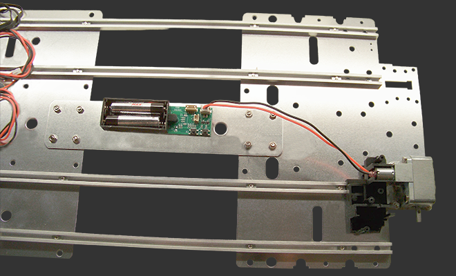 Montage du moteur électrique sur le mécanisme de la suspension arrière gauche et fixcation sur la plateforme.