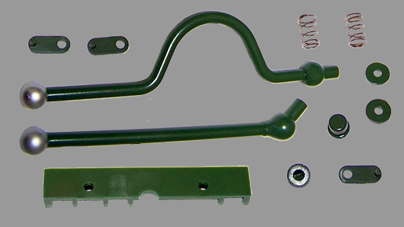Assemblage du levier de vitesses, sur le tableau de bord du poste de comduite.