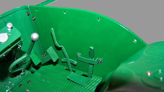 Montage de la pédale d'embrayage et de frein sur le poste de conduite.