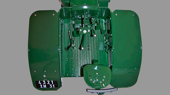 Montage du garde-boue arrière gauche sur le tracteur.