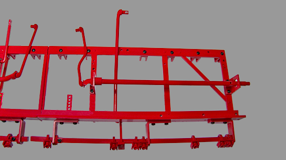 Assemblage du système de réglage de la hauteur des dents de la herse.