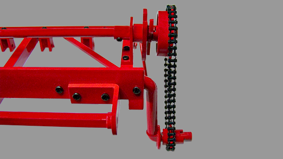 Montage de l'arbre de roue droite sur le système d'entraînement par chaîne du nouvement des dents de la herse droite.