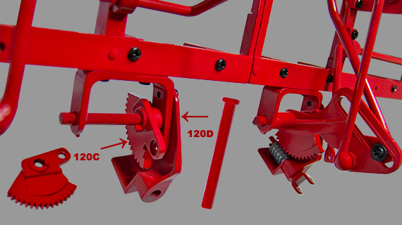 Assemblage de l'axe de la roue dentée sur le support du mécanisme des dentes.