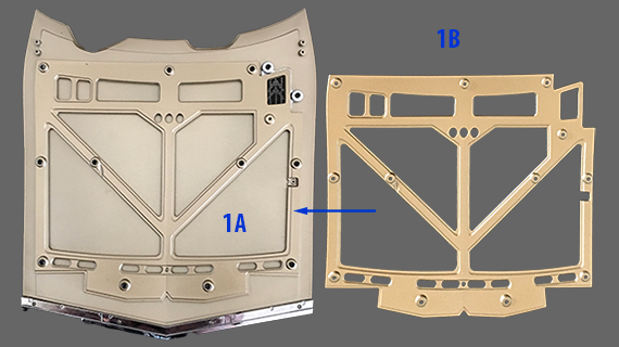 Assemblage du capot moteur avec la structure inférieure et l'enjoliveur de la prise d'air.