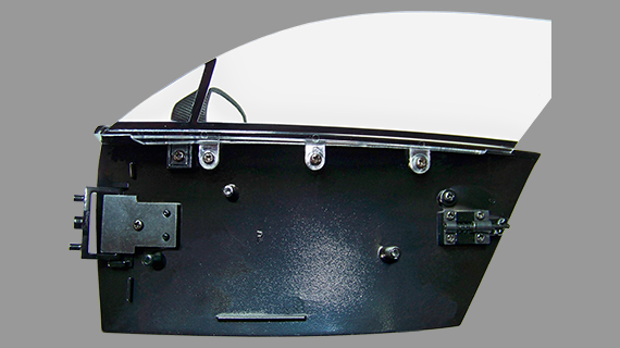 Assemblage de la fenêtre droite et de la serrure, charnière sur la portière droite.