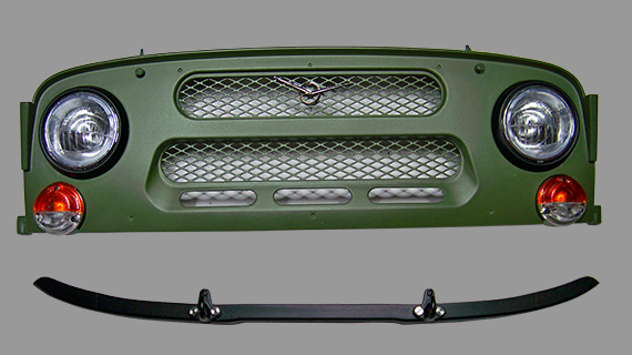 Assemblage du pare-chocs avant, la calandre, phares, clignotants, capot moteur.