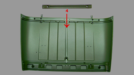 Montage du renfort 3 sur le capot moteur.