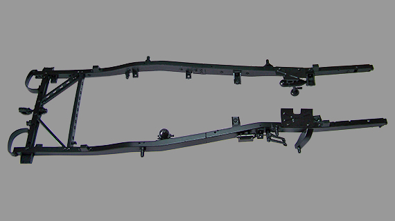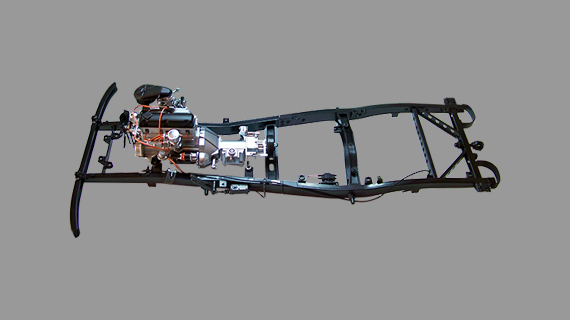 Montage des deux longerons de renfort et du moteur sur le châssis.