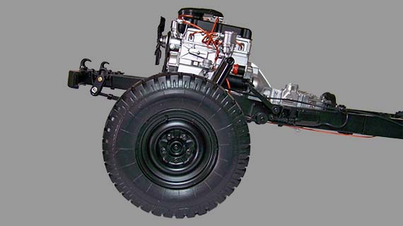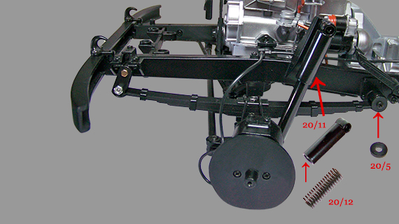 Montage de l'amortisseur avant gauche et de l’ensemble des lames de suspension et fixation sur l’essieu.
